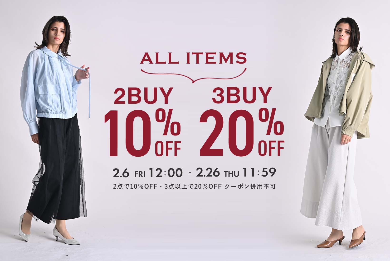 新作もSALEアイテムも対象!2点以上の購入で10%OFF、3点以上で20%OFFになるスペシャルキャンペーンを開催中!